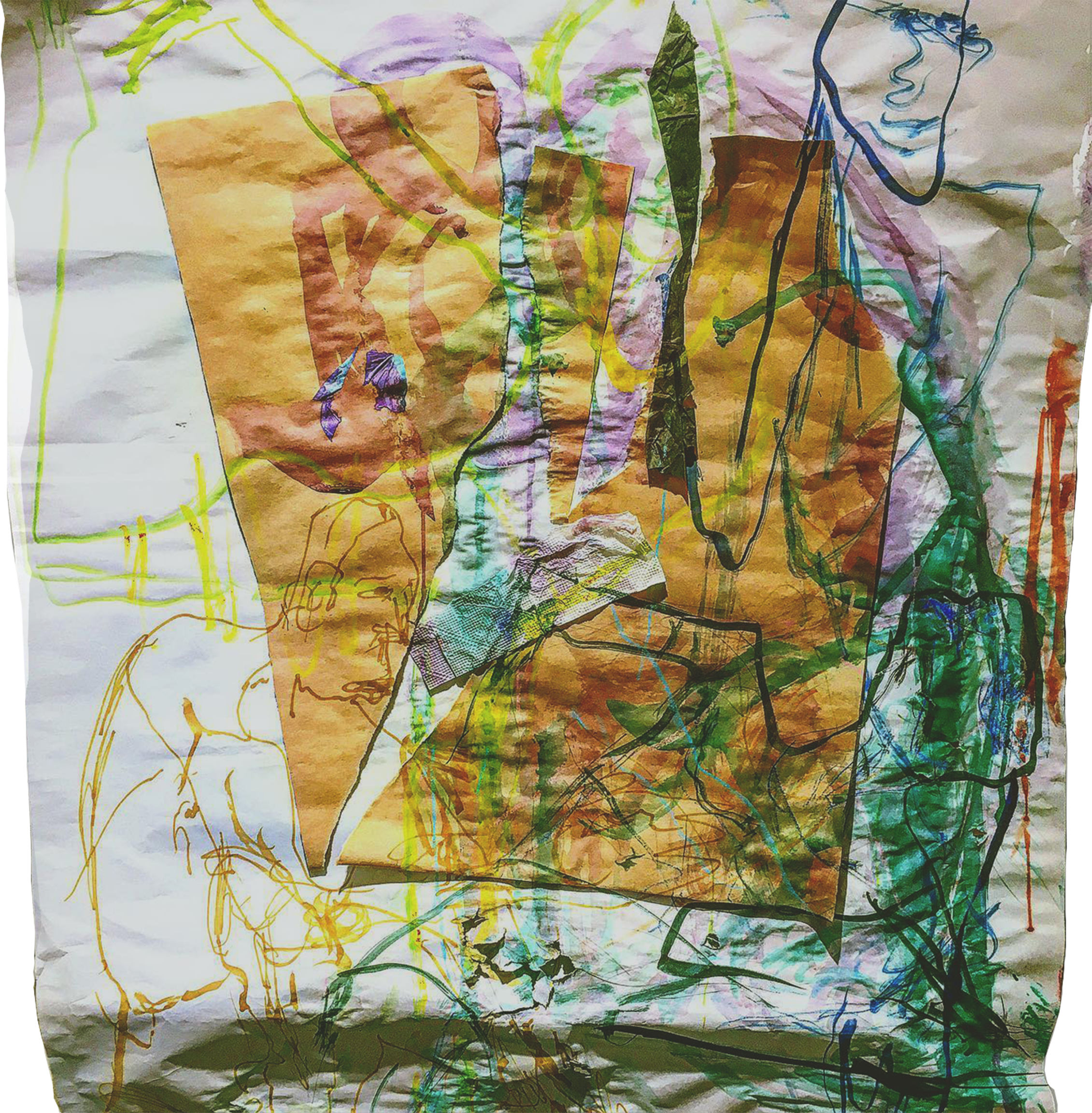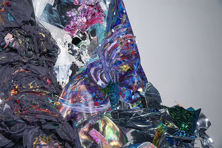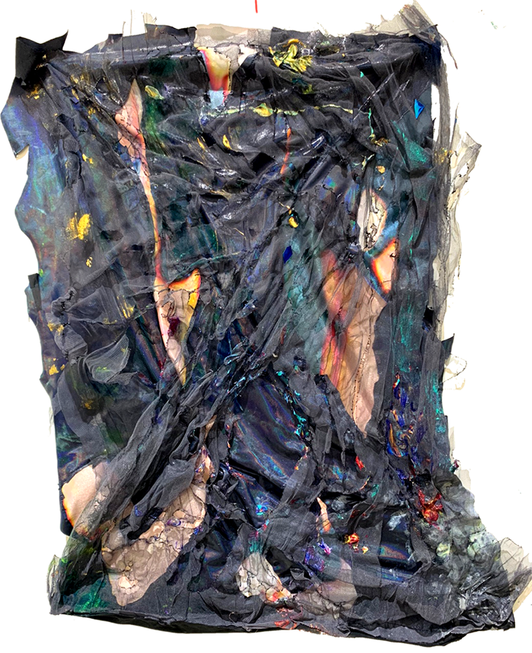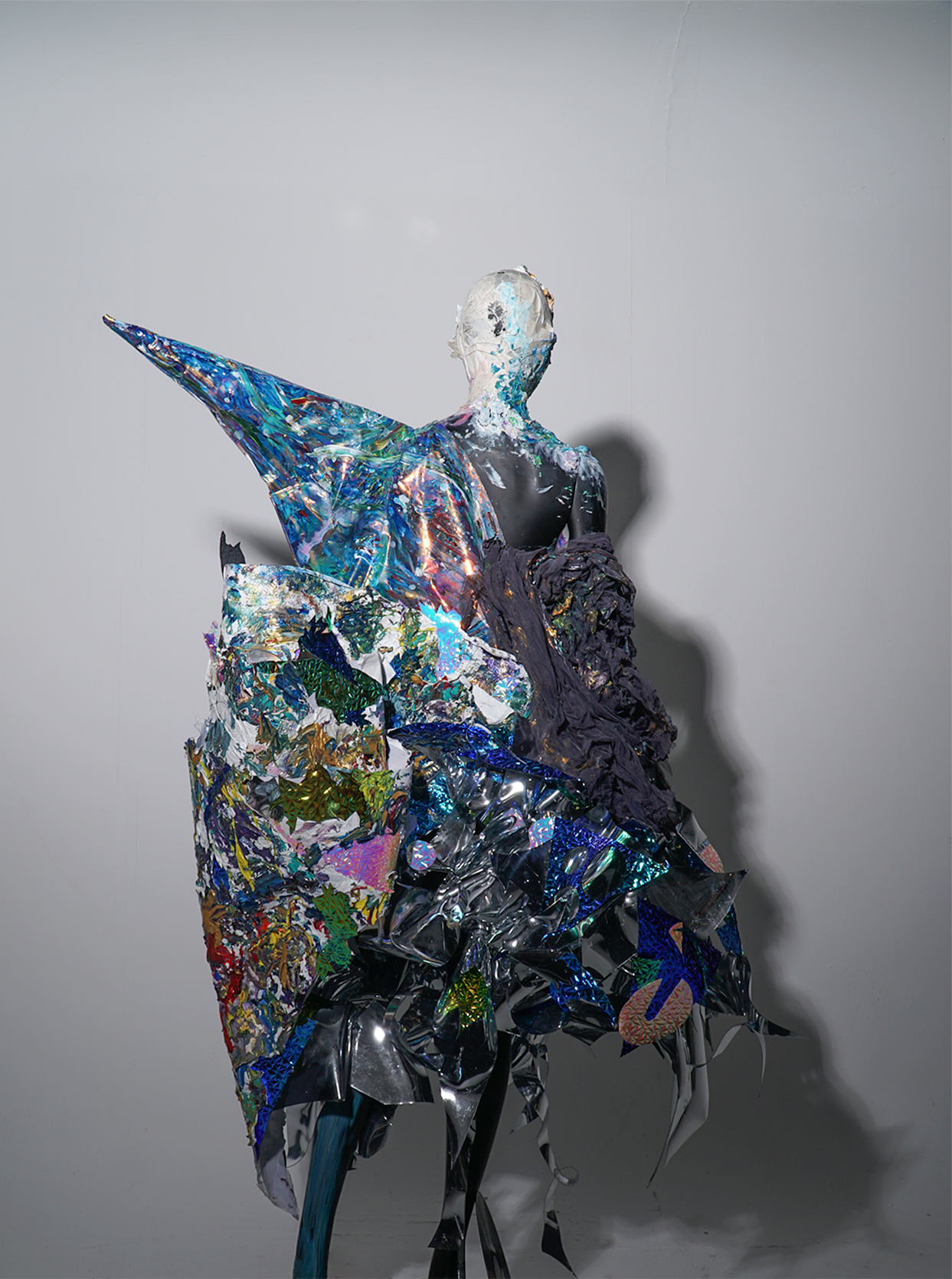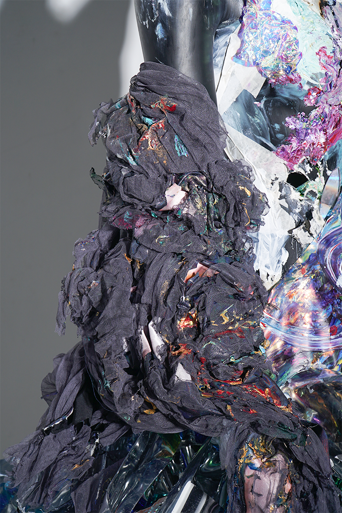 Cloth on the mannequin (fabric, broken lp, paint and mannequin)