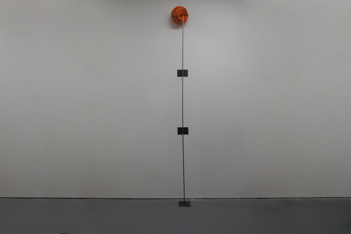 A basketball wedged between an iron fence and a concrete wall - 24.3 x 30 x 250cm